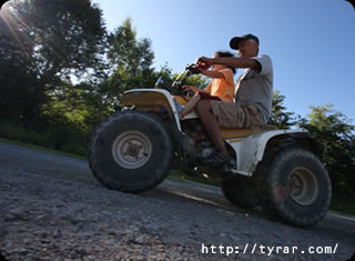 とうもろこし狩りの後は、バギーで遊びました♪センターロッジ の近くにある広〜いフリーエリア・・・ほんっと広い!(笑) 2台のバギーをお借りして、風を切って(と言う程のスピードは出な いけど)走る姿はとっても楽しそう☆ せっかくなので私も乗ってみましたが、なかなか爽快で・・・ でも原付と違って四輪なので、なんか曲がるのが難しかった〜! 怖くて乗れないお子ちゃまも、跨って記念撮影を(笑) 思いの他盛り上がりを見せました♪ |