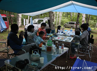 | 今年も行って来ました!日和田高原キャンプ場!! 去年までメインイベントだった火祭りも、残念な事になくなって しまって・・・。(去年の車中泊オフはコチラの日記で) どうなる事やらと少々不安になりつつも、 無計画に出発(笑) お盆休み明けなので今年は参加者も少々少なめでしたが、 お天気にも恵まれて、美味しい空気と綺麗な景色・・・これは 楽しまなくちゃ!とかなりの意気込みでした^^ とりあえず、いつものセンターロッジ前の駐車場に参加者集合→ そして去年と同じくフリーサイトを確保しました。 白樺の林の中、涼しくて気持ち良かったです♪ |