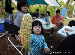 | 【1日目】 まずは第一のイベント、とうもろこし狩りです♪↑→ 近くの畑へ皆で移動して、子供たちは食べ頃の大きく実った とうもろこしを力いっぱいモギモギ・・・・(笑) あれ、一本の幹に沢山実がなると思ってたんですが、わざと 一本で1つにしちゃうみたいです。 そうすることで、栄養が十分に行き届いて、甘〜くてプリプリ の大きいとうもろこしになるとか・・・・。へぇ〜っ。 こんな体験、普段の生活ではなかなかできないので、 興味津々、ドキドキワクワク☆ 20本以上も収穫し、大満足でした! |