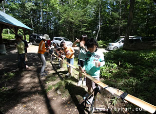 | 2日目の朝は、皆で炊き込みご飯やカレー、前日収穫したとうもろこしなどを茹でて、美味しい朝食を頂きました! このとうもろこしがまた絶品☆で!! 20本以上あったのに、2日で食べきっちゃいました♪ そしてメインイベントは・・・流しそうめん(笑)→ 想像以上の竹の長さにビックリ!! いつも小食のウチの子たちも、流れてくるそうめんに夢中になって食べてくれました^^ これは大人も子供も楽しめて・・・凄く良かったです☆ 恒例行事にしたいな〜〜。 |