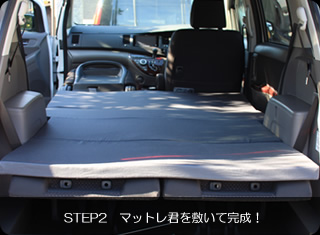 たった数分でこの車中泊仕様に切り替えることができるのは、