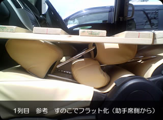 | 2列目にタイラー君、3列目にタイラー君スリムを敷きます。 (右写真では、それぞれハーフサイズを2枚ずつ使用) 段差が綺麗に解消されているのがわかります。 改造不要のタイラー君なら、倒したシートに置くだけです♪ |